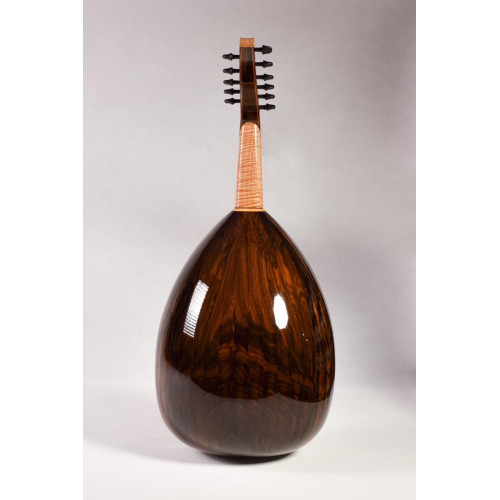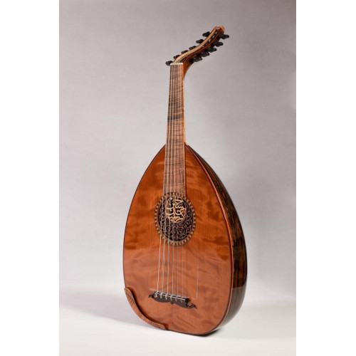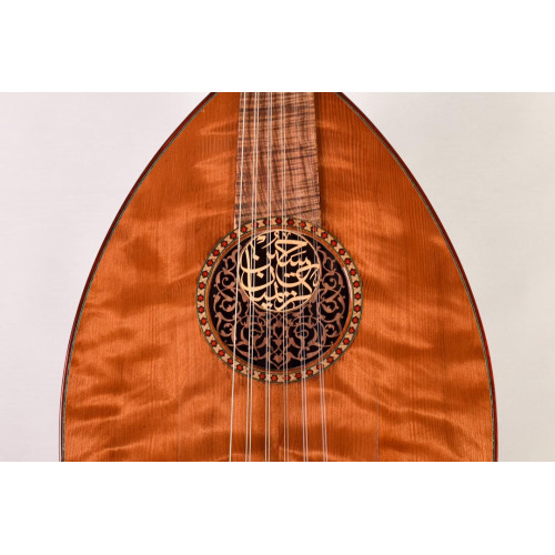 Curly redwood top is more than 200 hundred years old that sings on its own accoustically, let alone being matched with ziricote bowl makes this oud an impressive creation.
