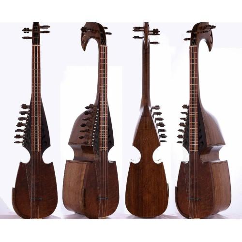 Gather round, all ye Mohammadi Bros fans: I've got a rare treat in the house today! An Alt Robab, shining like moonlight on the water with it's delicate and complex built. Mohammadi Bros only built a handful of these, so the odds of finding another Alt Robab like this one are pretty slim--and what a beast! The bass is crisp and explosive, and there's an awe-inspiring clearness in the separation of notes that will leave your every arrangement lush and orchestral. With the classic combination of one piece walnut body and lamb skin for the top, this Mohammadi Bros Alt-Robab more than lives up to its heritage.
