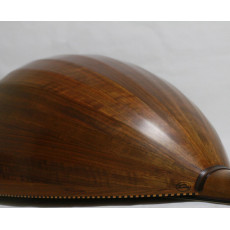 All original finish, straight grain walnut back with scalloped ribs(see picture) and beautiful 5A grade Canadian red cedar top. No repairs of any kind except finishing touch at the edge of pickguard near to the main soundhole(See Picture). The Oud features the most sought after Jumbo Size Mohammadi Bros (61.5cm scale)which is not any more produced, Red cedar top, Curly walnut neck, striped ebony fingerboard and Rosewood bridge, original rosewood friction pegs, bone nut and ibex horn saddle. Shellac matt finish, also the soundboard!