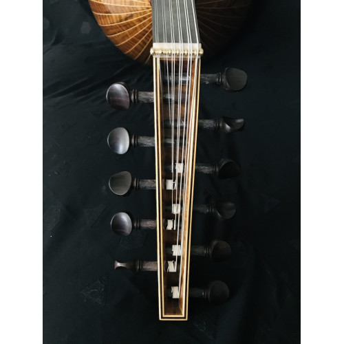 Designed to be the perfect oud in mind, this oud maintains the elusive crispness, thanks no doubt to that German Spruce top and the unflagging craftsmanship of Mohammadi Bros Ouds. If you're looking for an oud that inspires as much for its appearance as its voice, your search is over: this "girl" is plucked for you.