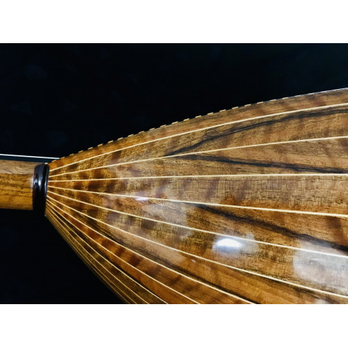 As breathtaking as the first morning of spring with its promise of the coming warmth of sunlight, this 2021 Mohammadi Bros oud is a work of art fit to breathe new life into your compositions--and your collection. Plucked harmonics yield haunting overtones, and the trebles shimmer with a focused edge, but don't overpower the balance between the bass and middle registers, which are themselves expressive and rich. And how could the voice be any less resplendent? Mohammadi Bros blessed the gorgeous flamed walnut, with a German Spruce top to ensure the tone of this oud. The tone of this beauty is comprehensive, articulate, and inspirational. With the same flamed walnut neck, the rich warmth is amplified further.