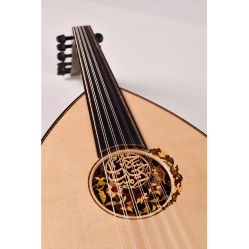 This one is a special oud. Stunningly made by Hossein Karimian with a shallow body which takes care of easy playability and great sound!
