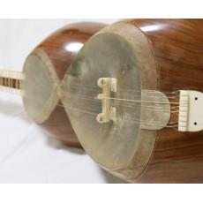 Beautifully mirrored old log Walnut body and neck completed with an awesome looking inlay in between camel bone finger board, makes this instrument one of their custom made versions.