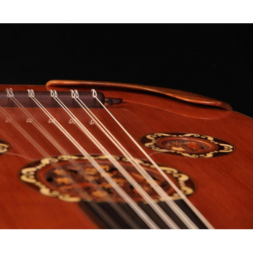 This oud is immensely powerful, with a headroom that seems limitless, perfect balance, a midsection that has no limits and a definition that brings only oohs and aaahs. Another great quality definitely lies in being refined, subtle and responsive, as soon as the wind touches the strings this oud starts to sing. This particular limited edition Model has a unique bracing system with razor thin braces with a x brace reinforcing the spot were normally the tonque brace is found. This allows for just a bit more crispness in the bass response, and it makes the top swing just a little more on the right places. Other features include custom Style deluxe purfling-trim matched with Curly Walnut binding, Ebony fingerboard, and Rosewood burl armrest, Brass-eyed ebony friction pegs, full hide Glue construction, 58.5cm scale length, bone Nut, and classic rosewood bridge. Check on the insane delicate details like the impressively detailed bowl-end-work and inlays around the sound holes, french-polished gloss ebony bridge, french-polished through-out, also check out the pristine look of hand cut Rossette. This oud is not just another oud, but a fully handmade work of art that is of the very highest Level of detailing and Tone. (sorry i couldn't stop writing about it!)