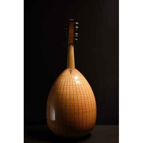 As breathtaking as the first morning of spring with its promise of the coming warmth of sunlight, this 2021 Hossein Karimian oud is a work of art fit to breathe new life into your compositions--and your collection. Plucked harmonics yield haunting overtones, and the trebles shimmer with a focused edge, but don't overpower the balance between the bass and middle registers, which are themselves expressive and rich. And how could the voice be any less resplendent? Karimian blessed the gorgeous flamed maple, whose bee's wing figure gives the oud a sun-kissed golden hue, with Red Cedar top to ensure the tone of this oud. The tone of this beauty is comprehensive, articulate, and inspirational. With the same flamed maple neck, the rich warmth is amplified further.