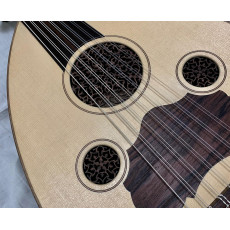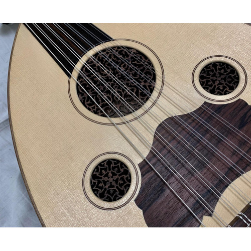 If you've ever heard of Hamid Ghorbanzade, you already know the pedigree of this Oud. Let's take a look at this cadillac of Ouds, the 2014 Ghorbanzade made oud, pre-owned and played by the famous oud player Sina Shoari(https://youtu.be/vzaopslTYtc)! This Oud appointments shine in pristine glory: stunning flamed walnut body bowl accompanied with 5A grade german spruce top ensures you of top-notch sounding oud for years to come! This oud has that Mojo that every oud player looks for.