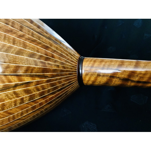 As breathtaking as the first morning of spring with its promise of the coming warmth of sunlight, this 2021 Mohammadi Bros oud is a work of art fit to breathe new life into your compositions--and your collection. Plucked harmonics yield haunting overtones, and the trebles shimmer with a focused edge, but don't overpower the balance between the bass and middle registers, which are themselves expressive and rich. And how could the voice be any less resplendent? Mohammadi Bros blessed the gorgeous flamed walnut, with a German Spruce top to ensure the tone of this oud. The tone of this beauty is comprehensive, articulate, and inspirational. With the same flamed walnut neck, the rich warmth is amplified further.