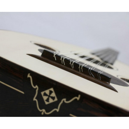 This one is made of top grade Wengé with one maple stripe around the edge of the bowl & neck. Ebony fingerboard, Full Wengé peg box, Bone nut, Wengé binding, Rosewood bridge with top layer of ebony, Wengé Shams and 4A grade german spruce top in scale of 58.5cm. Back finish is Shellac. Top has no finish!